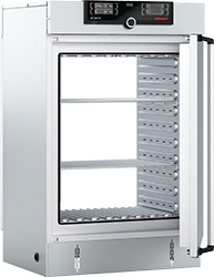 • With advanced Peltier technology: Memmert has practically doubled the efficiency of the entire heating and cooling technology compared to comparable appliances, saving up to 90% energy in comparison to compressor-cooled climate chambers and cooled incubators