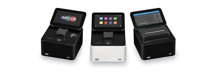 The Implen NanoPhotometer™ N50 UV/Vis spectrophotometer for NanoVolume applications. Quantify DNA, RNA, proteins and scan other samples within seconds. Intuitive touchscreen operation, small footprint and network integration for convenient lab bench operation.