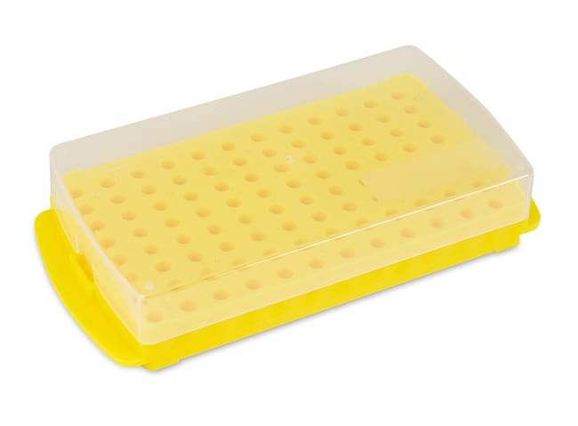 - Translucent lid fits securely and is tall enough to store most screwtop microcentrifuge tubes.