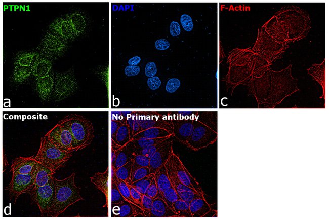 This product is preservative free. It is recommended to add sodium azide to avoid contamination (final concentration 0.05%-0.1%). Recombinant rabbit monoclonal antibodies are produced using in vitro expression systems. The expression systems are developed by cloning in the specific antibody DNA sequences from immunoreactive rabbits. Then, individual clones are screened to select the best candidates for production. The advantages of using recombinant rabbit monoclonal antibodies include: better specificity and sensitivity, lot-to-lot consistency, animal origin-free formulations, and broader immunoreactivity to diverse targets due to larger rabbit immune repertoire. This antibody has specificity for Human PTP1B/PTPN1.
