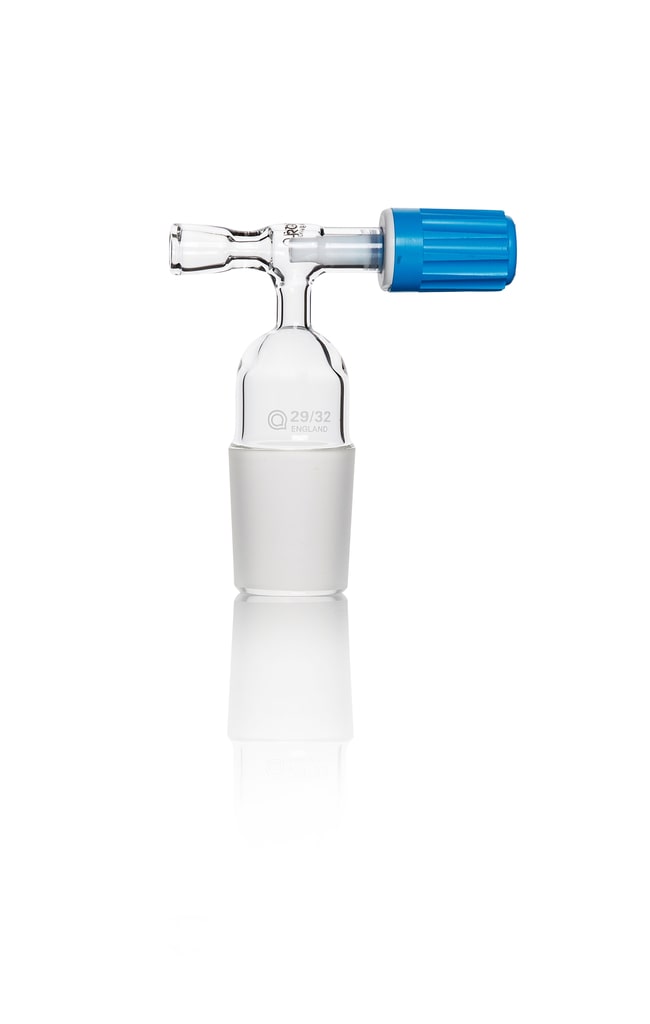 Inserts into the ground glass side-socket of an aspirator botte. Pyrex™ Borosilicate Glass Aspirator Stopcock with Ground Cone provides a leakproof seal.